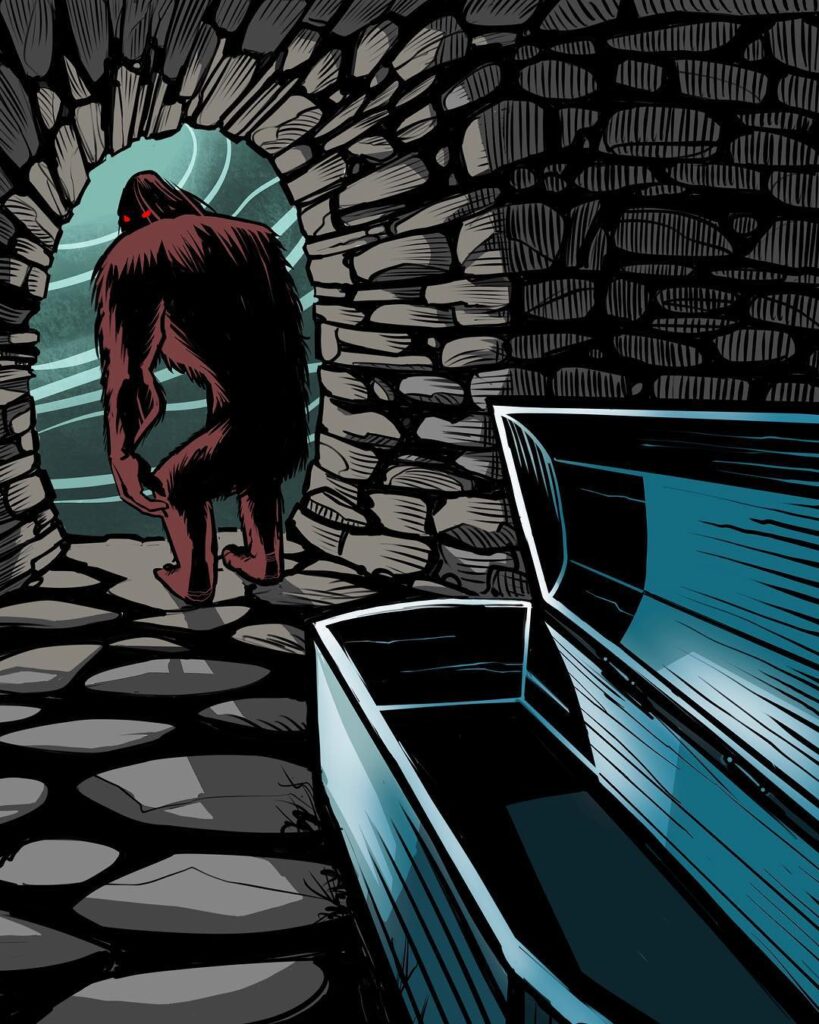 The coffin helped sell this as a Vampiric Sasquatch but that idea was eventually tossed as a story emerged.